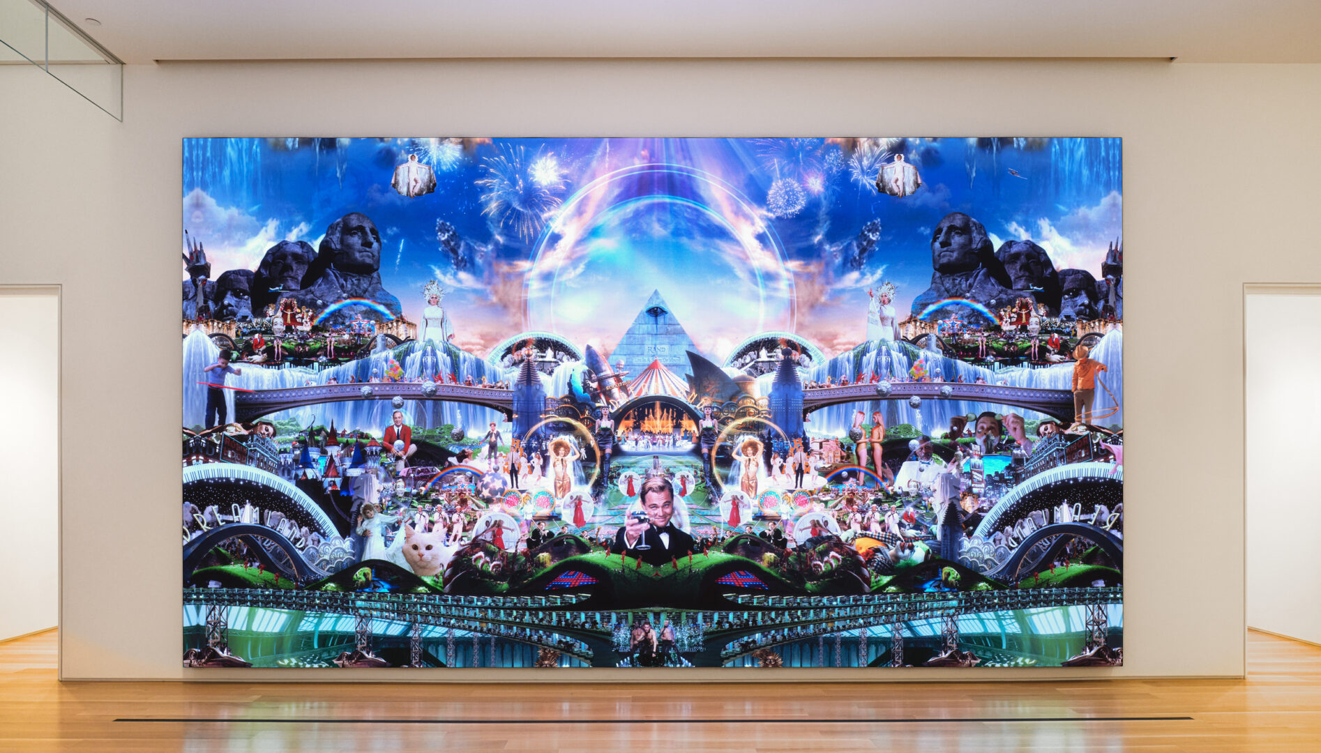 A lavish and satirical take on the silver-screen spectacle of Hollywood dreams and excesses, Heaven’s Gate both celebrates collective storytelling and satirizes saturated glamour and stereotypes. The continuously looping video ascends through the seven levels of purgatory, each stage its own unique landscape of visual samples lifted from iconic moments in cinematic history.