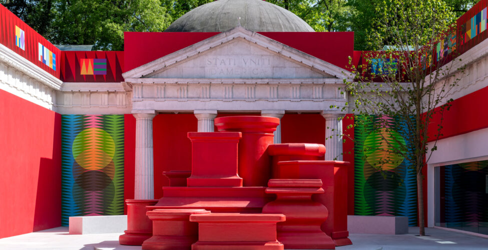 The Portland Art Museum and SITE Santa Fe, in cooperation with the U.S. Department of State’s Bureau of Educational and Cultural Affairs, present Jeffrey Gibson as the representative for the United States at the 60th International Art Exhibition of La Biennale di Venezia. Gibson is a member of the Mississippi Band of Choctaw Indians and of Cherokee descent. The United States Pavilion exhibition is titled “the space in which to place me,” and remains on view through November 24. A selection of coverage is offered below.