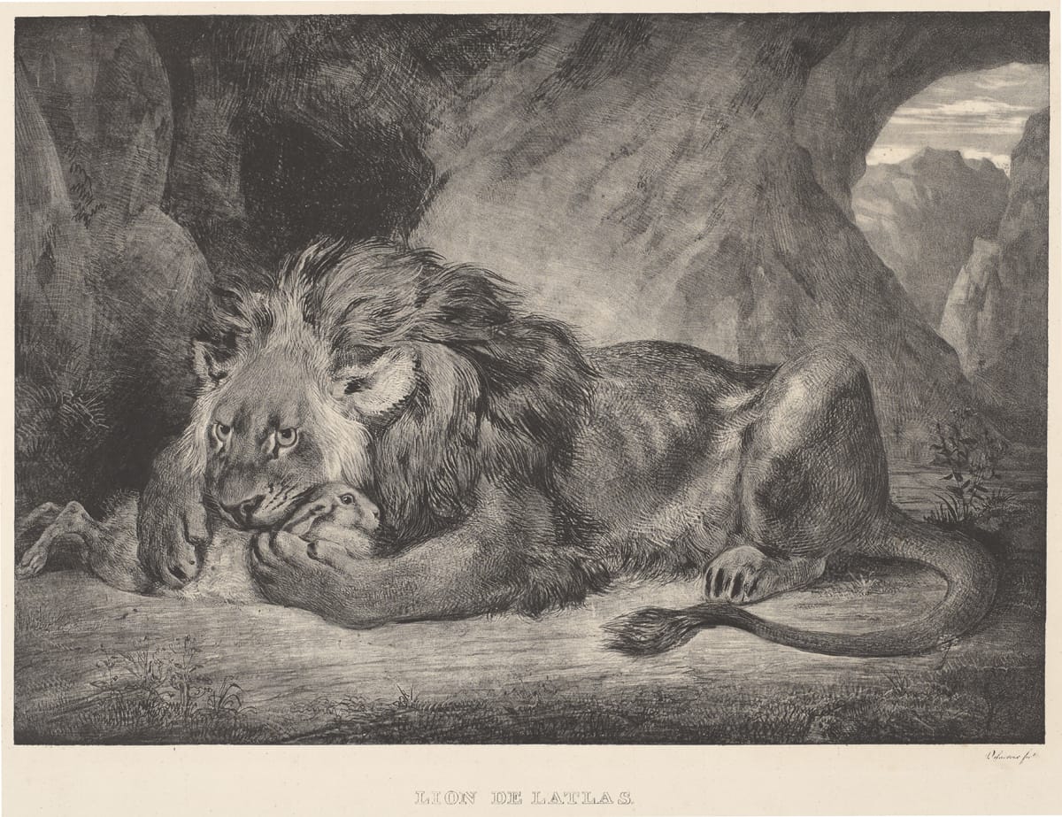Eugène Delacroix (French, 1798–1863). Lion de l’Atlas (Lion of the Atlas Mountains), 1829. Lithograph on cream wove paper. Bequest of Winslow B. Ayer, 43.10.3, public domain