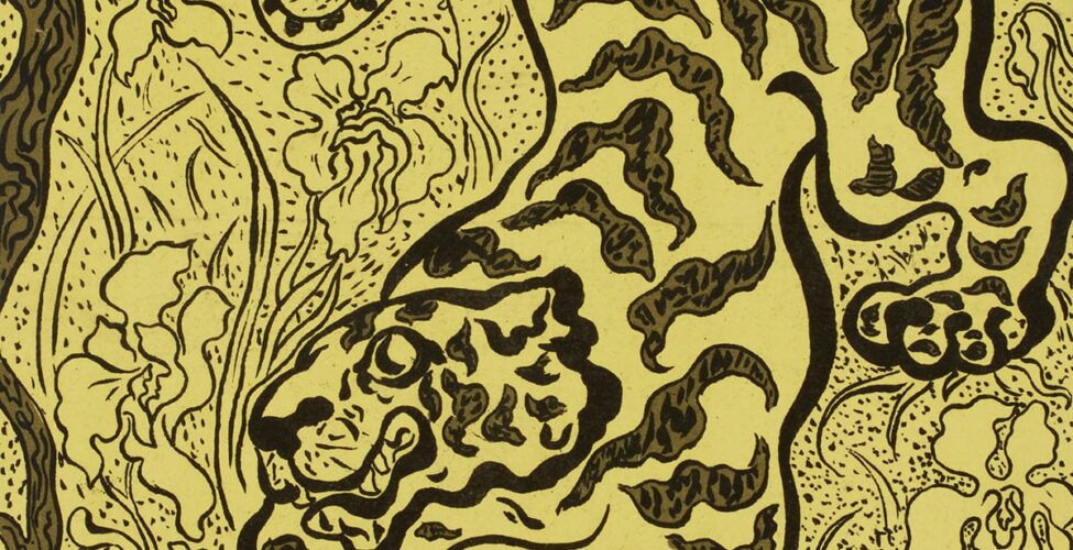 Paul Elie Ranson (French, 1862–1909), Tigre dans le jungle (Tiger in the Jungle), from L’Estampe originale (The Original Print), Album I, 1893. Color lithograph on cream simili-japon paper. Museum Purchase: Funds provided by the Jean Y. Roth Memorial Fund, the Graphic Arts Council, and Pamela Berg, 2014.156.1, public domain.