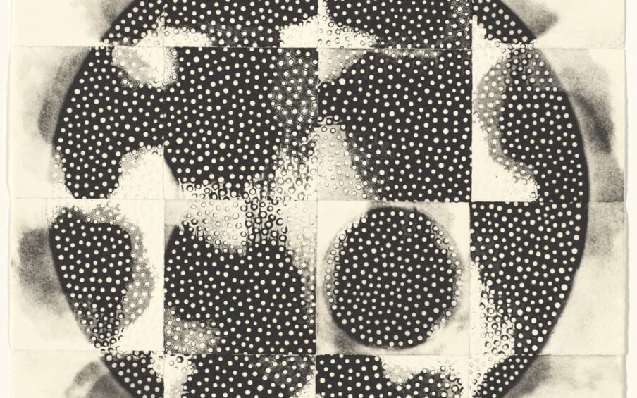 “Eunice Kim’s collagraph monoprints are intimate, meticulous constructions. Works in the Tessellations series are created from three-inch square monoprints—each individually inked and printed—which are then assembled to create a composite whole. […]